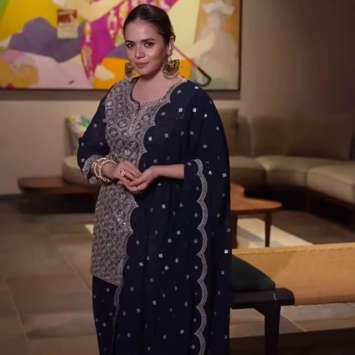 Beautiful Bollywood Style Elegant Indian Pakistani Party Wear Elegant Fashion Top Palazzo Dupatta Gharara Designs Thread